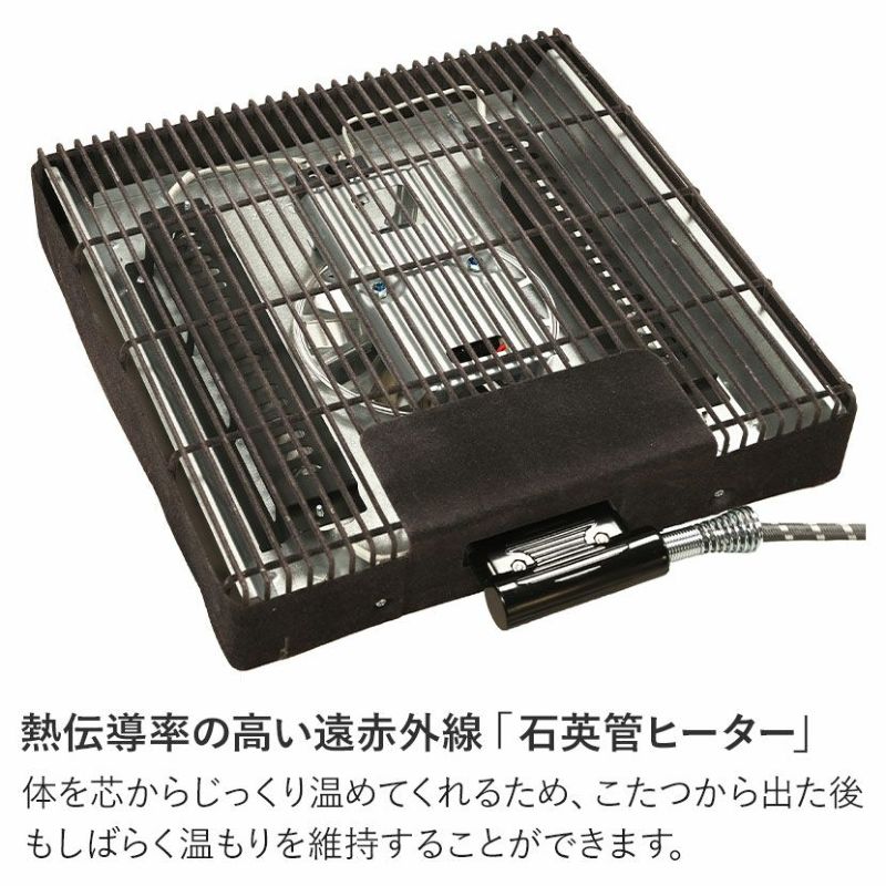 こたつ内が暖かくなるまでに少し時間が掛かりますが、薄型のファン付きで全体をムラなく均一に暖めてくれます。