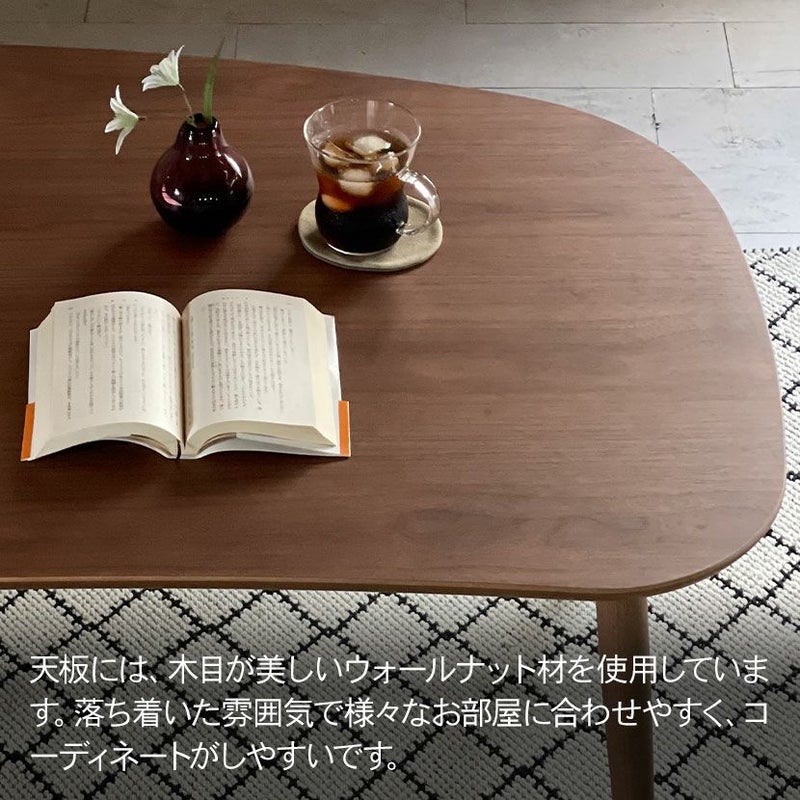豆型天板の優しいフォルムが特徴のこたつテーブル。