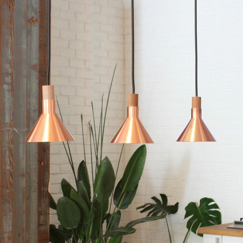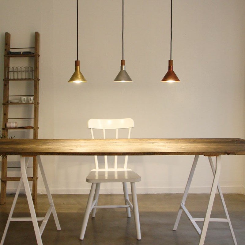 銅素材のシェードを通して広がる光は、温かく柔らかな色合い。お部屋全体を落ち着いた雰囲気に包み込み、くつろぎの空間を演出します。