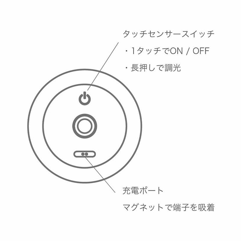 ベース部分に触れるだけで、明るさの調節(調光)が可能です。
