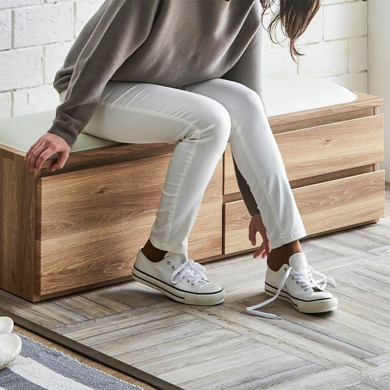 ●玄関用のベンチとして、子供部屋の収納として、使い方が広がるマルチな収納スツールです。