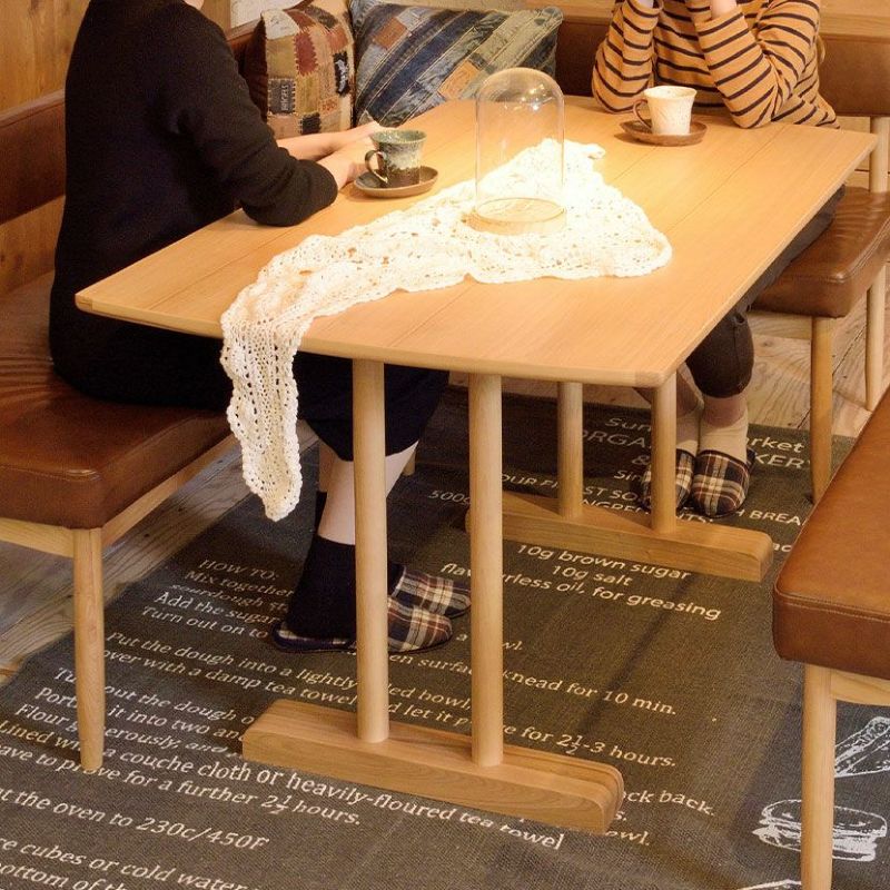 ダイニングテーブルとソファとベンチの組み合わせで、そのままリビングダイニングで使えるセットです。素材にはハッキリとした木目が美しいアッシュ天然木を使用。建築の床材や野球のバッドの原料としても使われるアッシュ材は耐衝撃性・耐久性にも優れています。テーブルの天板はウレタン塗装仕上げで傷や汚れに強く、お手入れも簡単です。木の優しい質感にブラウンの合皮がカジュアルさをプラスし、おしゃれなカフェ風の空間になります。