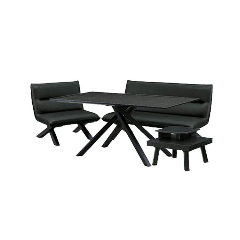 【設置無料】2人~3人用 ダイニングテーブルセット 4点 (幅150cmテーブル×1 コーナーテーブル×1 幅150cmチェア×1 幅85cmチェア×1) オシャレ モダン 大理石調 ウォールナット調 PVCレザー