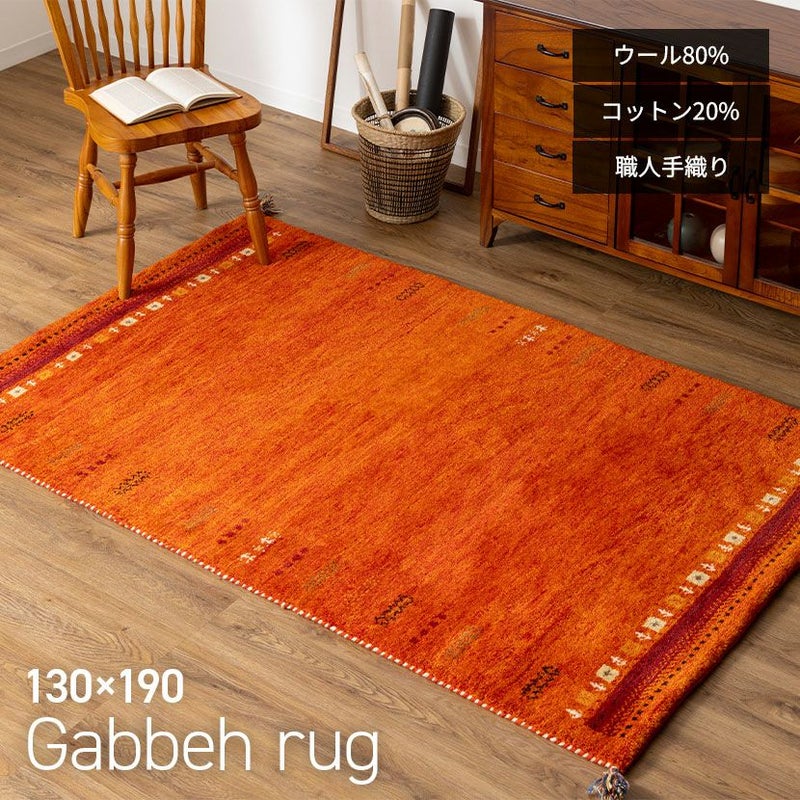 130×190cm ギャッベラグ SUNSET 手織り 天然素材 コットン ウール ラグ ギャベ 長方形 カーペット 床暖房対応 ホットカーペット対応 絨毯 おしゃれ 赤 レッド