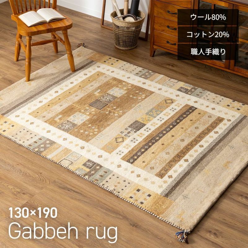 130×190cm ギャッベラグ SNOW 手織り 天然素材 コットン ウール ラグ ギャベ 長方形 カーペット 床暖房対応 ホットカーペット対応 絨毯 おしゃれ ナチュラル