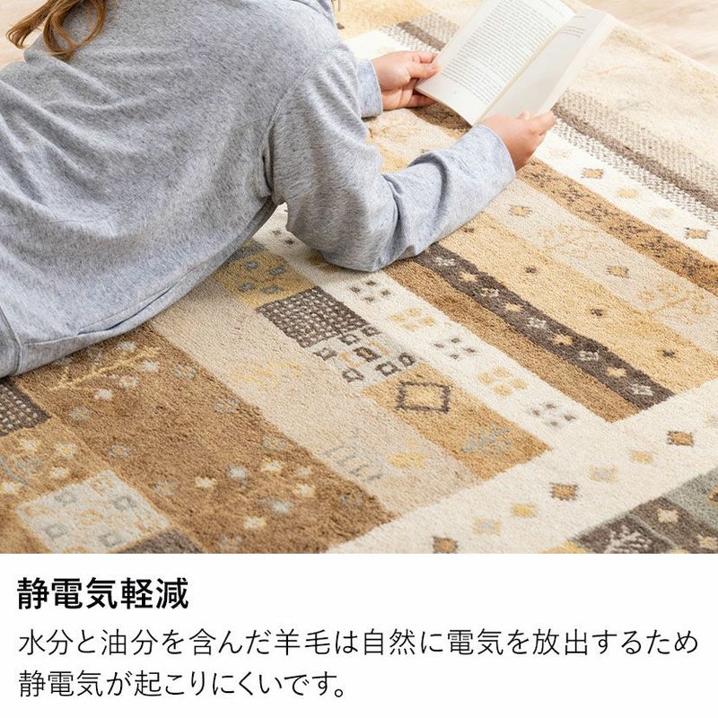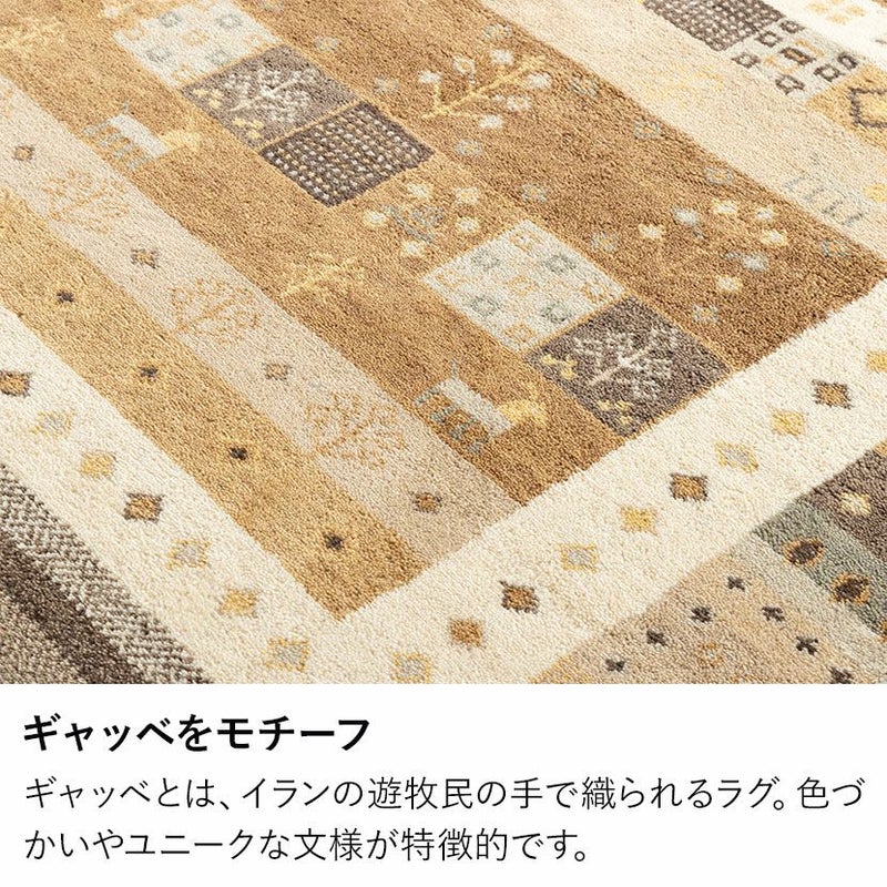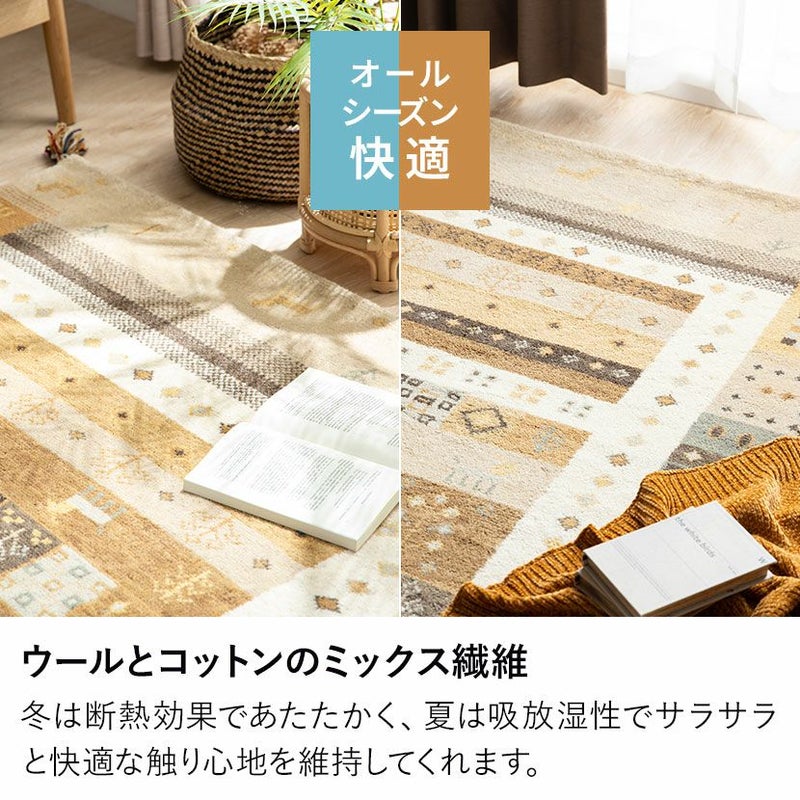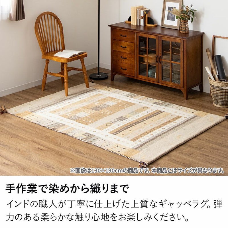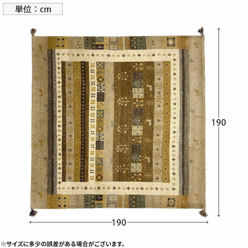 190×190cm ギャッベラグ SNOW 手織り 天然素材 コットン ウール ラグ ギャベ 正方形 カーペット 床暖房対応 ホットカーペット対応 絨毯 おしゃれ ナチュラル