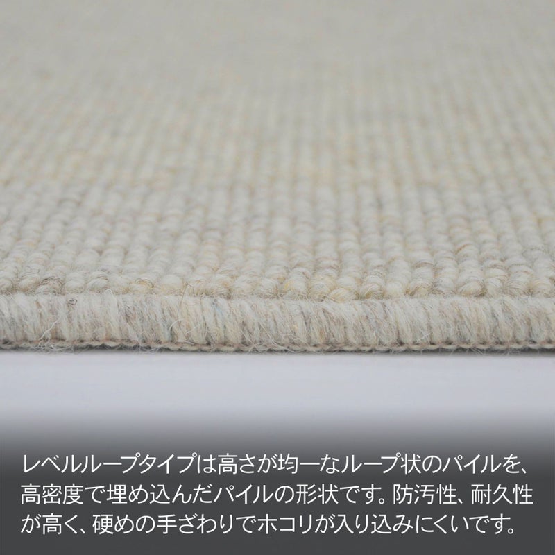 白、黒、グレーの羊の、自然な色合いを持つ有色羊毛と、生成り原綿を調合しています。ウールそのものの魅力を活かした風合いと味わいがある、ウール100%の無染色(カラードウール)のラグです。