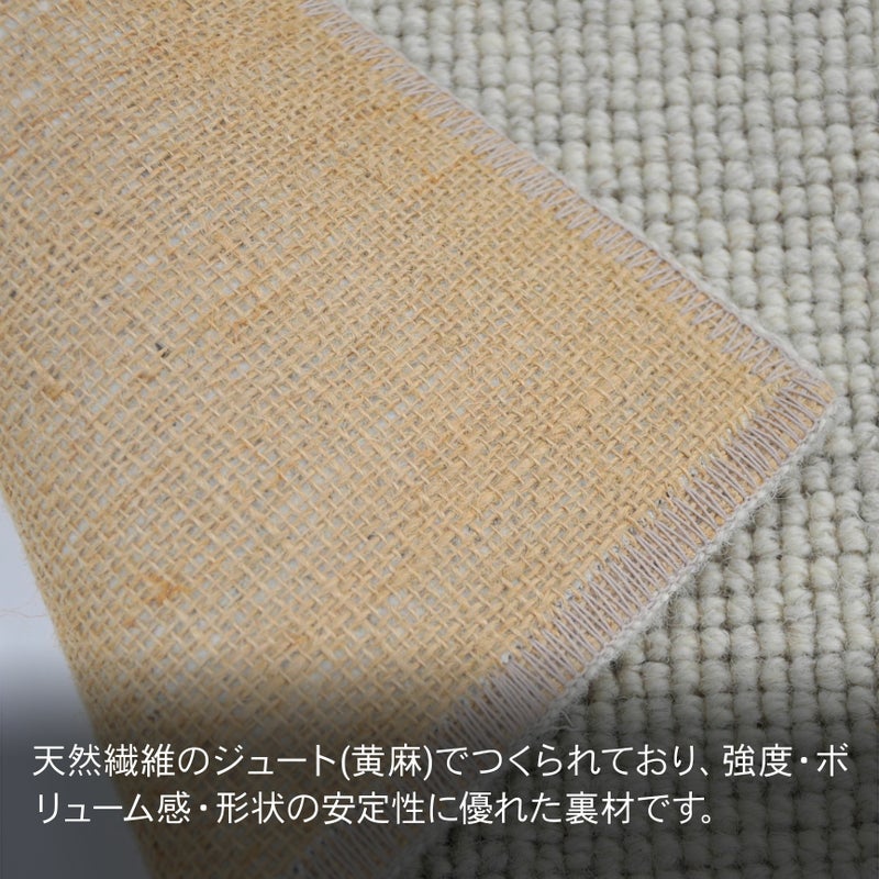 裏地には、強度・ボリューム感・形状の安定性に優れた天然繊維のジュート(黄麻)を採用しています。