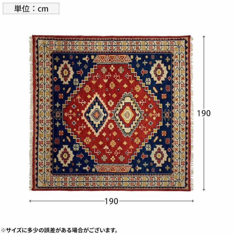 190×190cm トライバルラグ CRIMSON 手織り 天然素材 コットン ウール ラグ 幾何学 トライバル 正方形 カーペット 床暖房対応 ホットカーペット対応 絨毯 おしゃれ