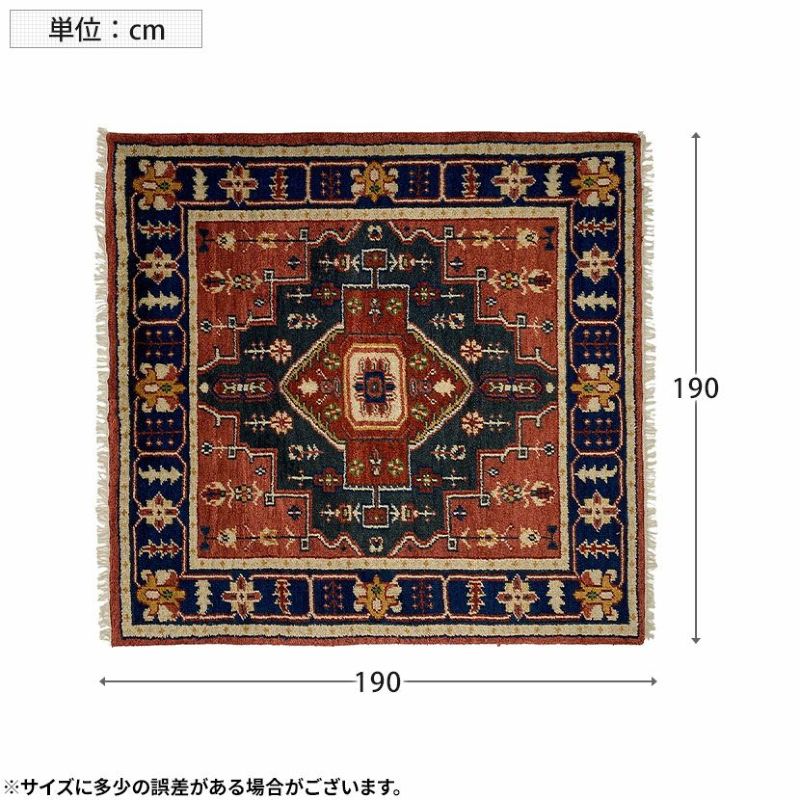190×190cm トライバルラグ MADRAS 手織り 天然素材 コットン ウール ラグ 幾何学 トライバル 正方形 カーペット 床暖房対応 ホットカーペット対応 絨毯 おしゃれ