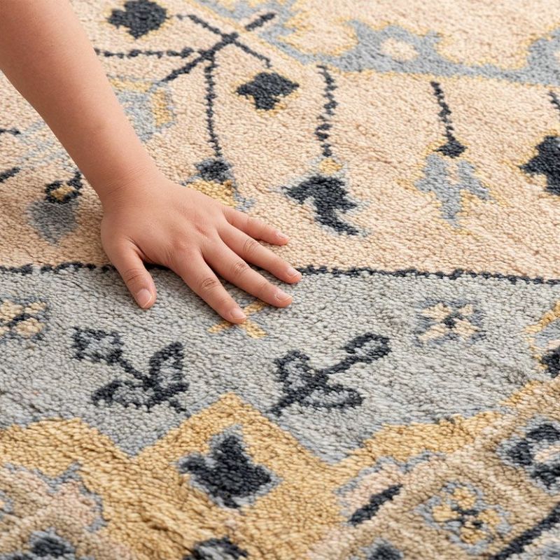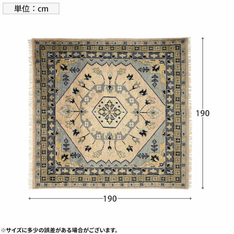 190×190cm トライバルラグ FLOWER 手織り 天然素材 コットン ウール ラグ 幾何学 トライバル 正方形 カーペット 床暖房対応 ホットカーペット対応 絨毯 おしゃれ