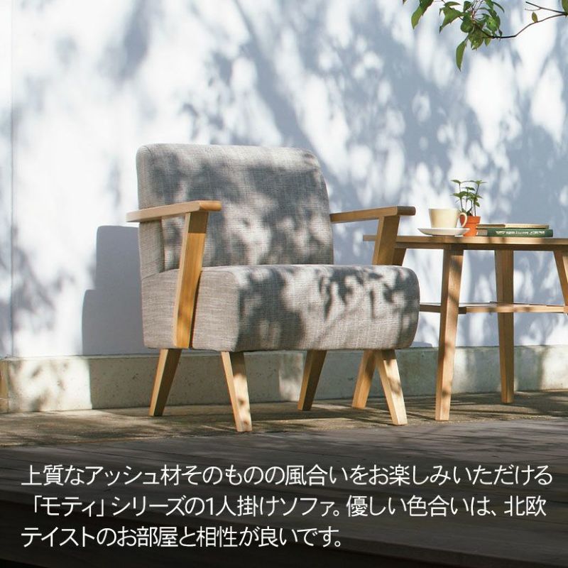 上質なアッシュ材そのものの風合いをお楽しみいただける「モティ」シリーズの1人掛けソファ。