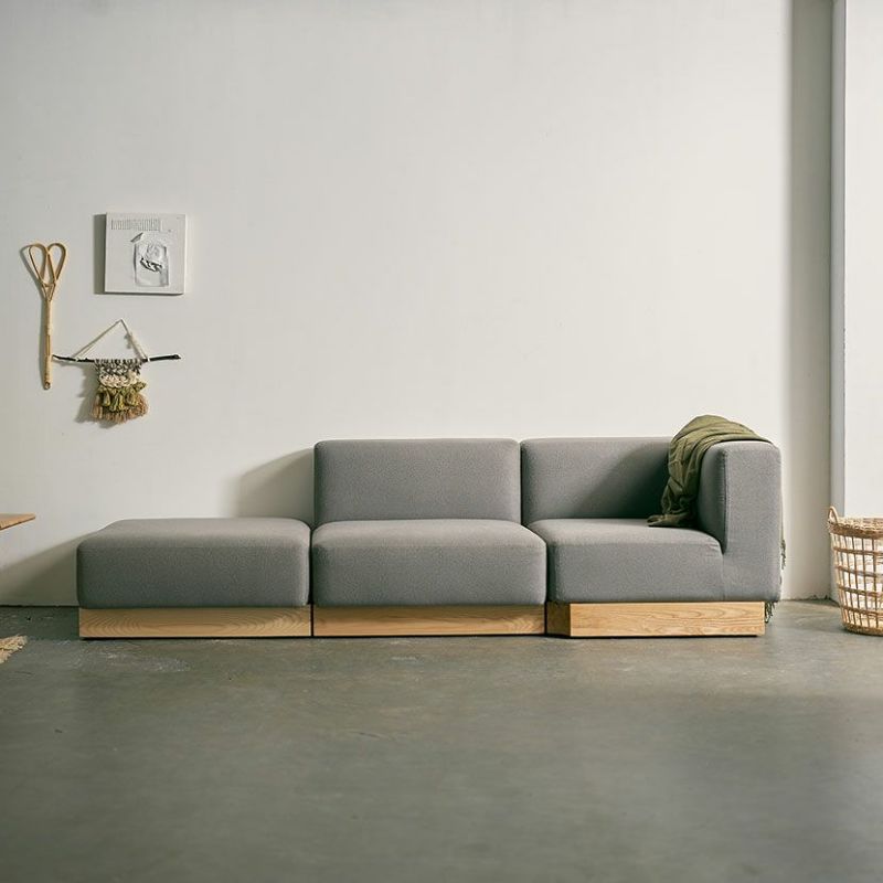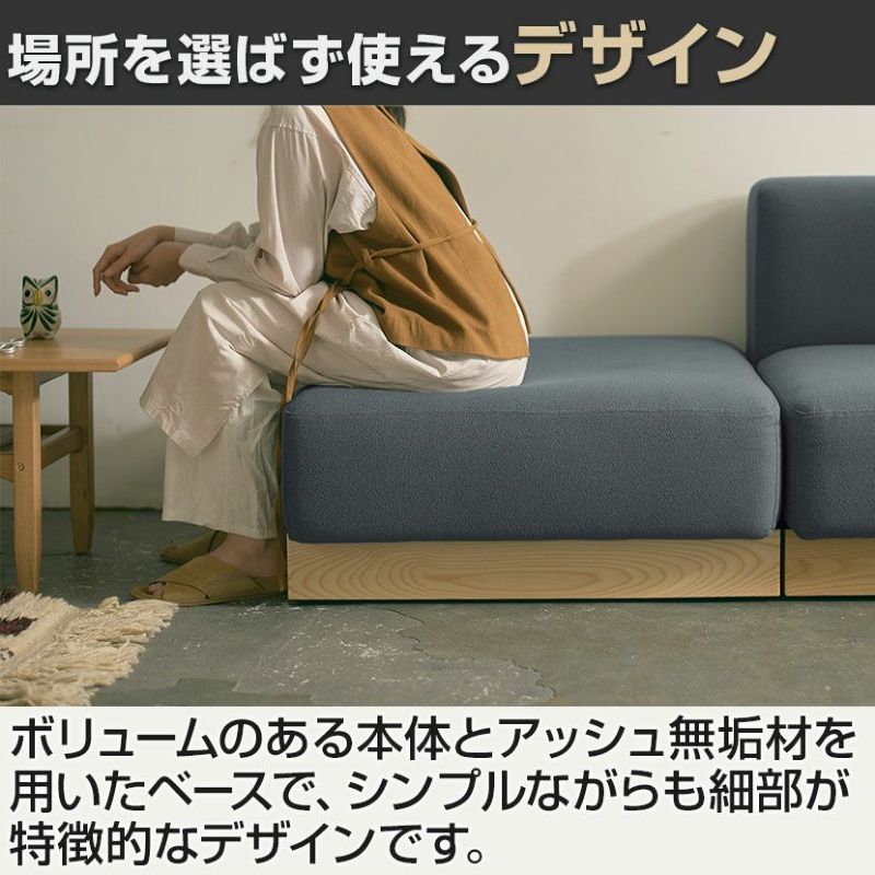 ・ボリュームのある本体とアッシュ無垢材を用いたベースで、シンプルながらも細部が特徴的なユニットソファです。