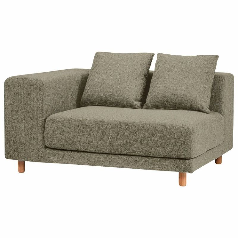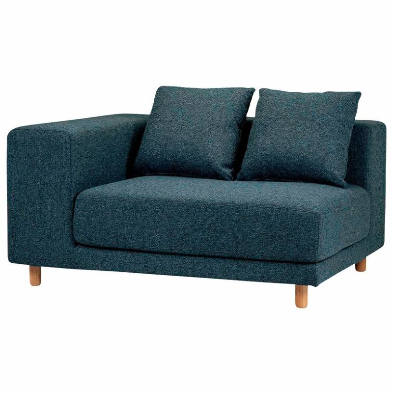 ・直線的なデザインの中に、丸みのあるクッションや木製脚など曲線も加え、重厚さとかわいらしさを併せ持つソファに仕上げました。