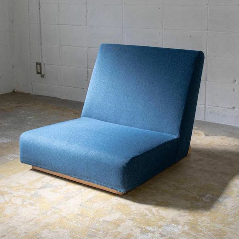 ・角材を組み合わせた脚フレームに、背と座一体型の本体フレームを配置した、座椅子のようなローソファです。