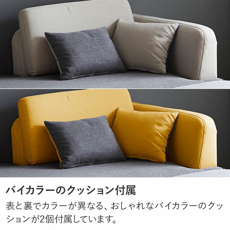 表と裏でカラーの異なる、おしゃれなバイカラーのクッションが2個付属しています。