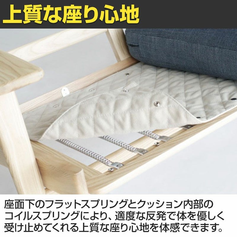 | 材質 | 座面 / ファブリック(ポリエステル100%) クッション / 高密度ウレタン、コイルスプリング 脚部 / アッシュ(無垢材) |