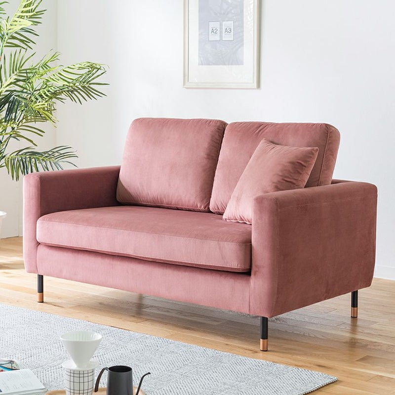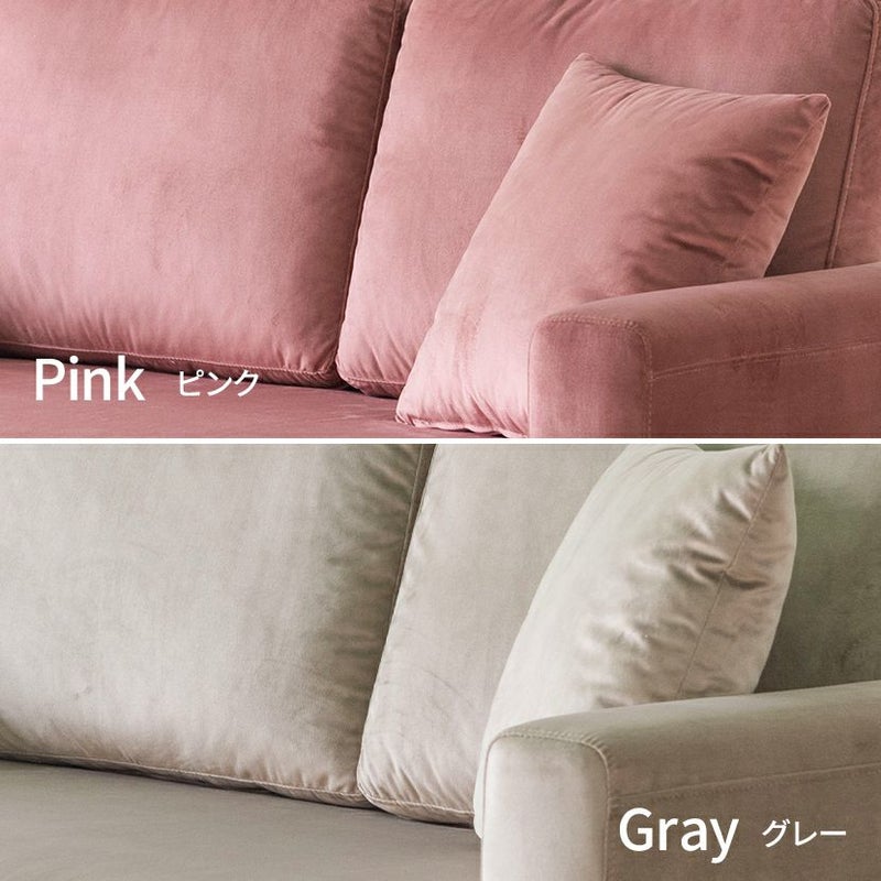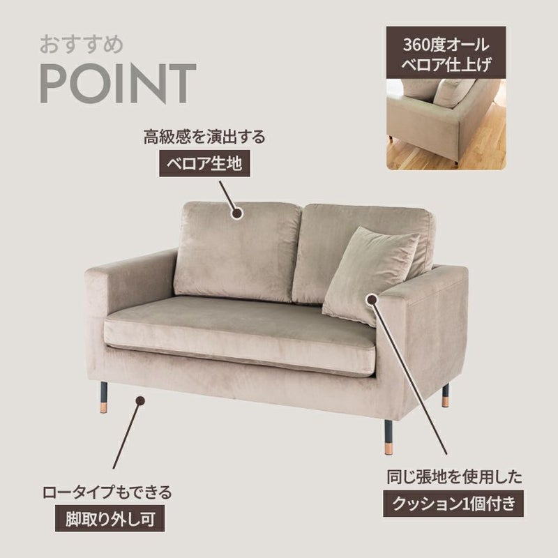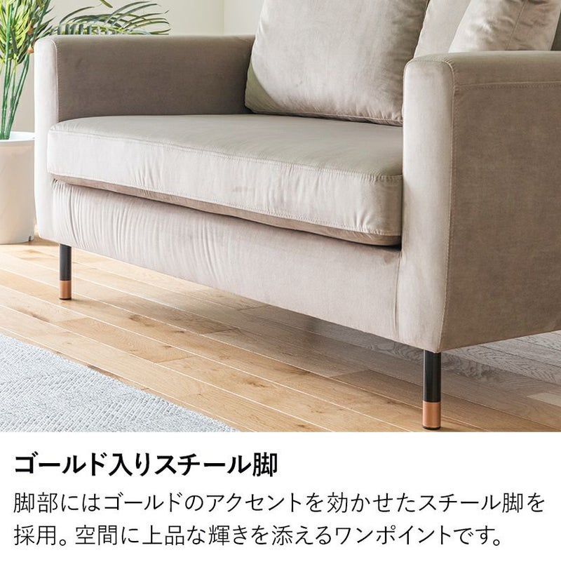 ソファ本体と同じベロア調生地を使用したクッションが1個付属。