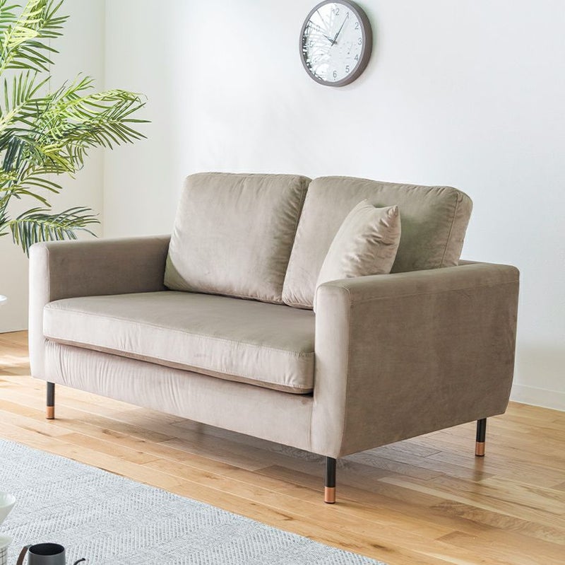高級感のあるベロア調ベルベット生地が、リビングに上品で落ち着いた印象をもたらします。