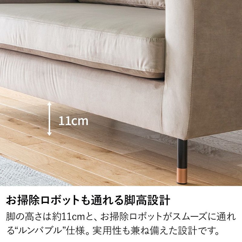 脚の高さは約11cmと、お掃除ロボットがスムーズに通れる“ルンバブル”仕様。