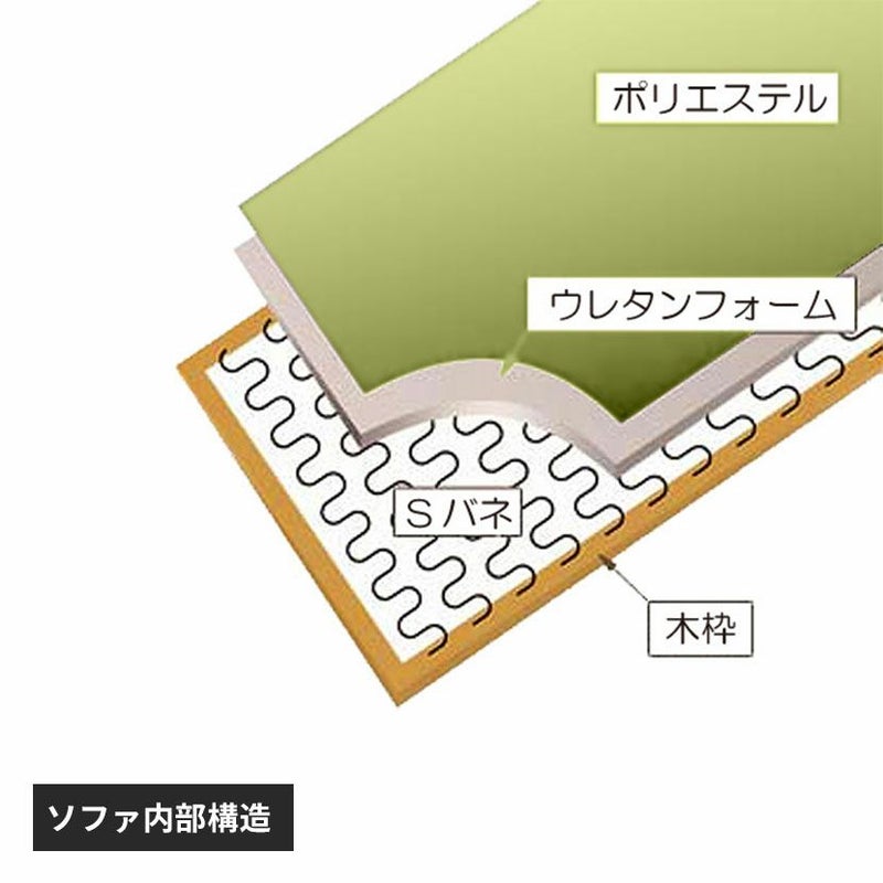 ●厳選された丈夫な天然木を木枠に適度な弾力性と耐久性を備えたSバネ、劣化の少ない優れたクッション性を持つウレタンフォームを使用しています。