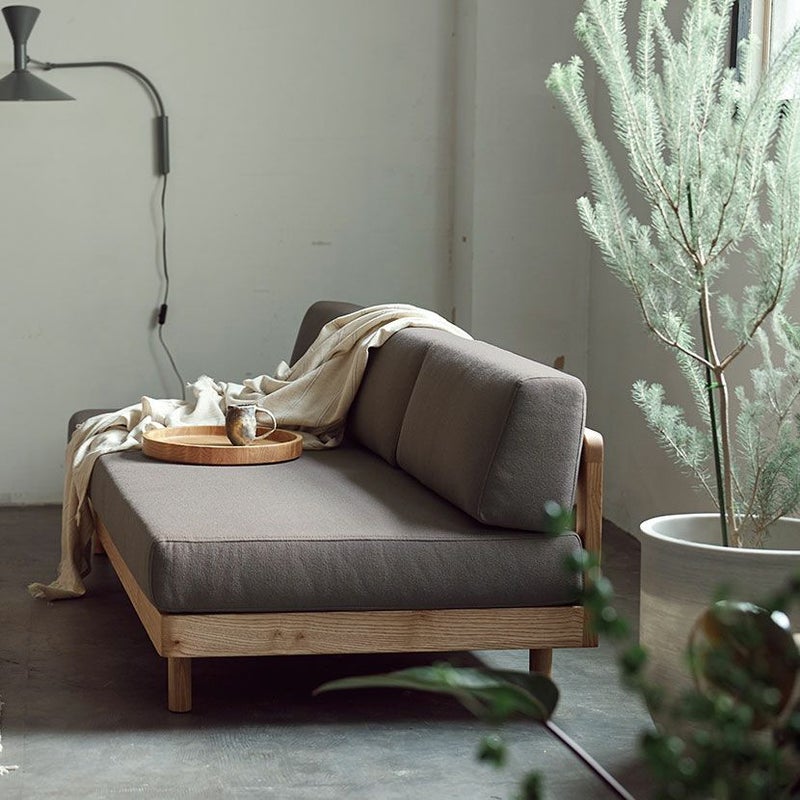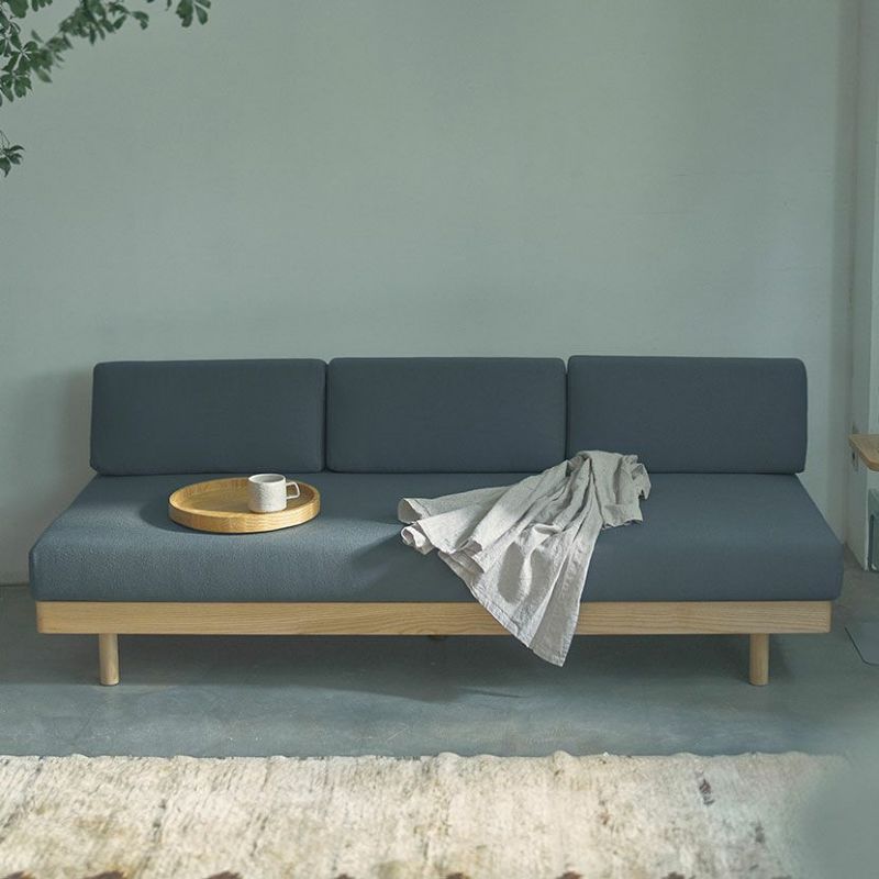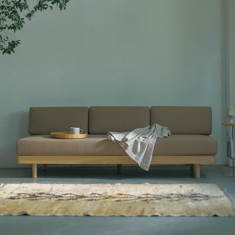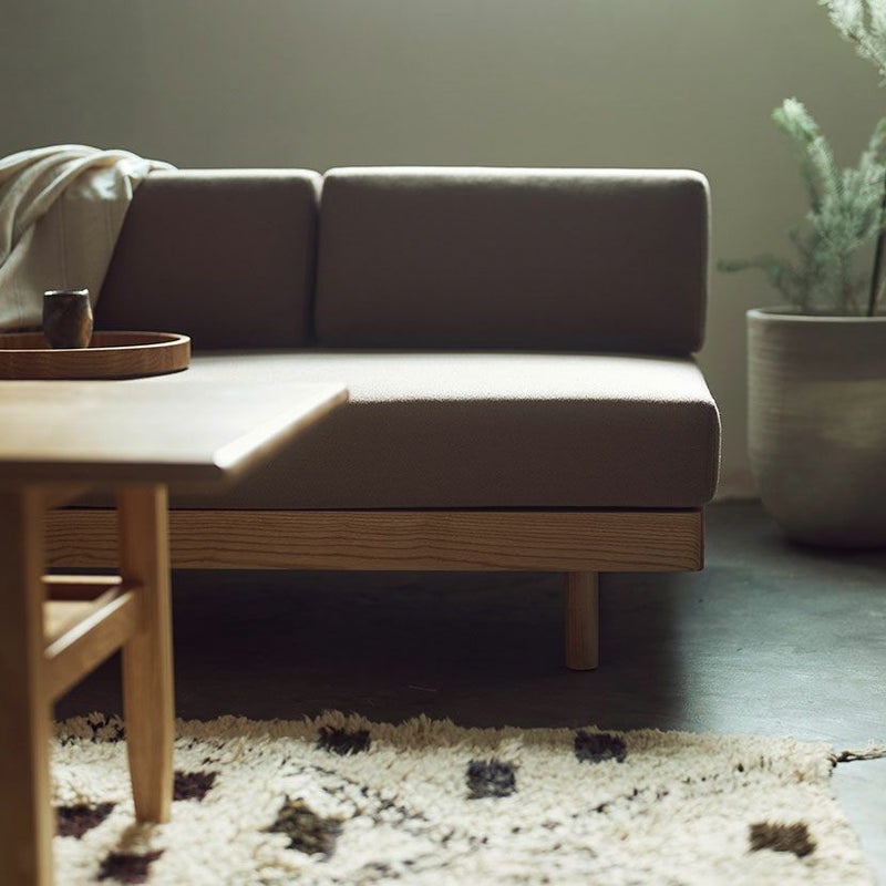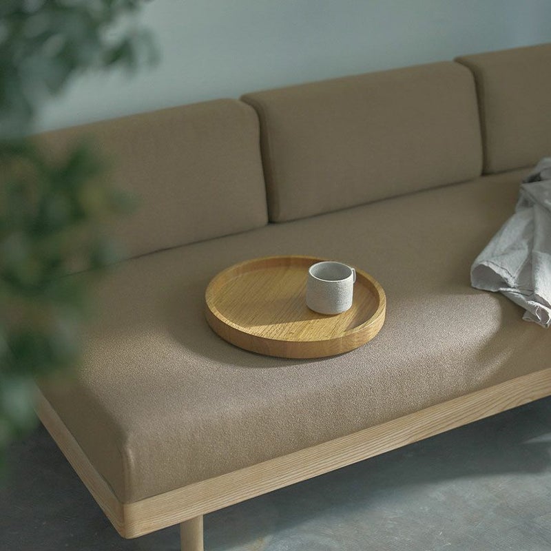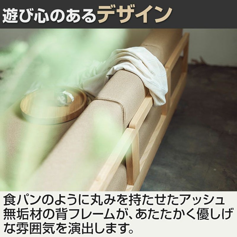 ・フレームにはアッシュ無垢材を贅沢に用い、食パンのように丸みを持たせた背フレームが印象的なデザインのソファです。