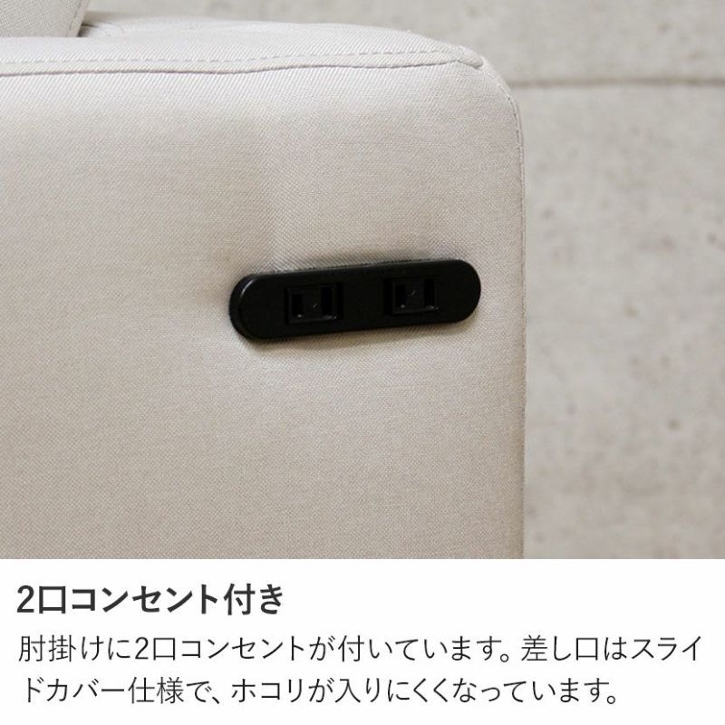 肘掛けに2口コンセントが付いているため、ソファに座りながら端末の充電が可能です。