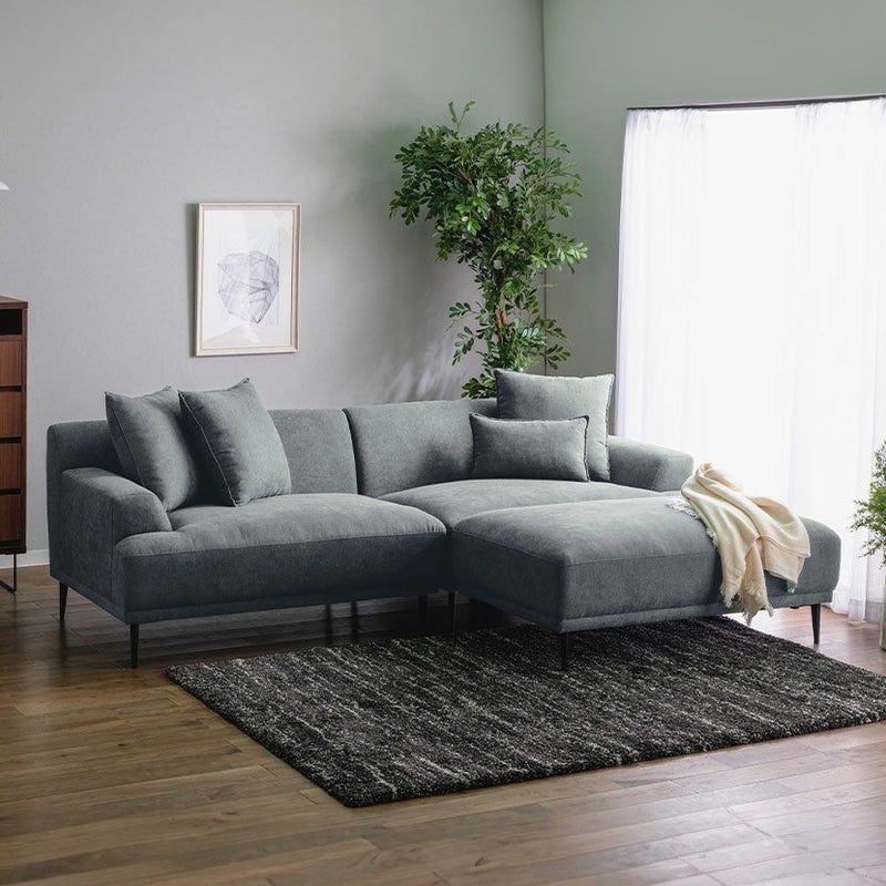 レイアウト次第で4通りの使い方が楽しめるカウチソファ。ゆったり座れる贅沢なワイドサイズ設計です。
