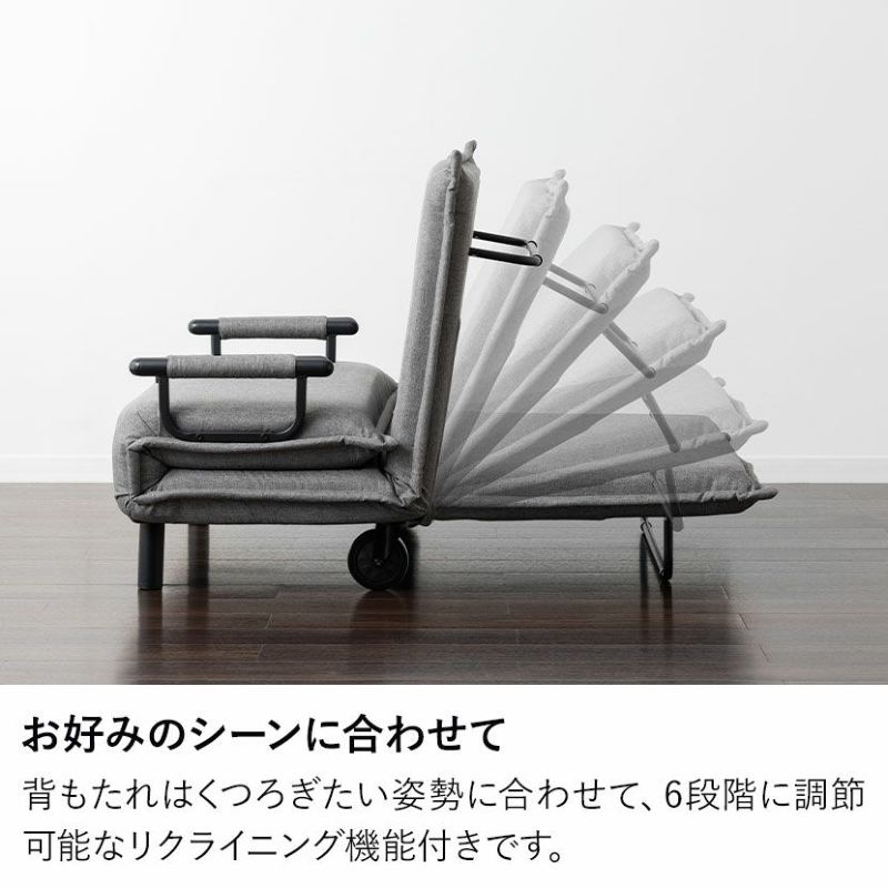 ワンルームや客室にもぴったりなコンパクトサイズのソフアベッド。 6段階調節のリクライニング機能付きです。
