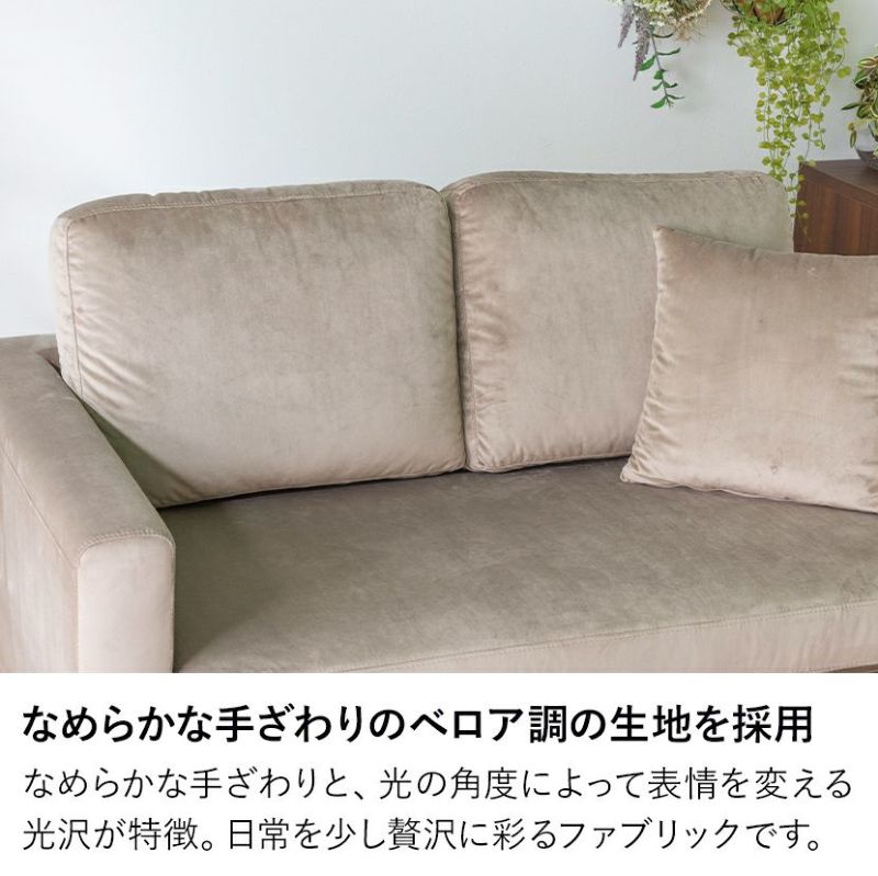 ソファ本体と同じベロア調生地を使用したクッションが1個付属。