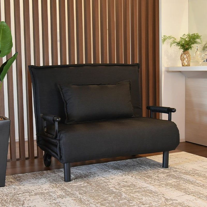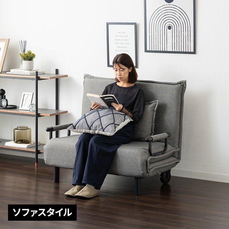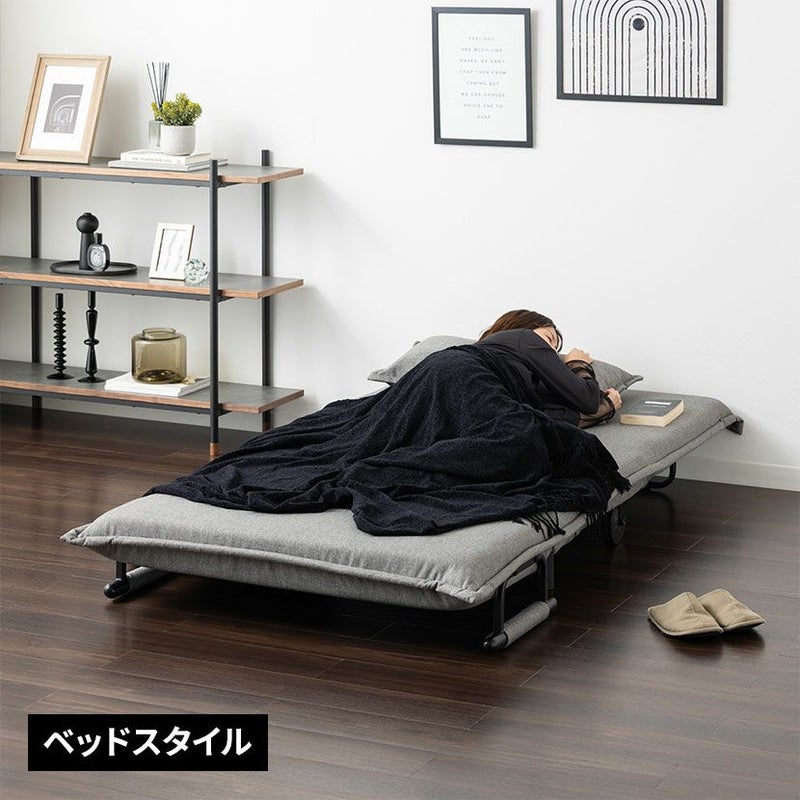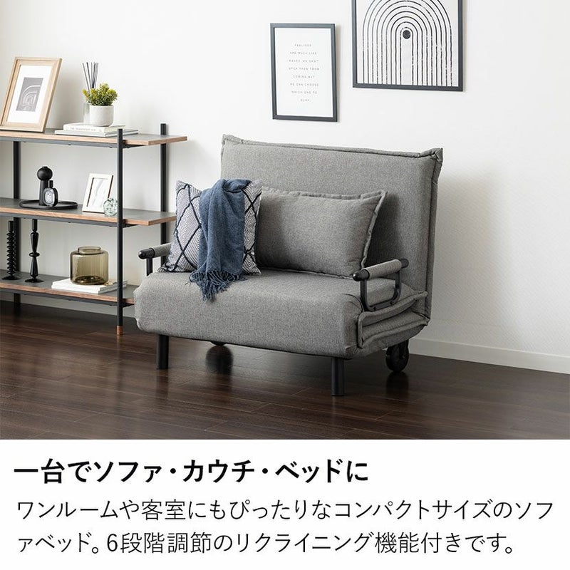 ワンルームや客室にもぴったりなコンパクトサイズのソフアベッド。 6段階調節のリクライニング機能付きです。