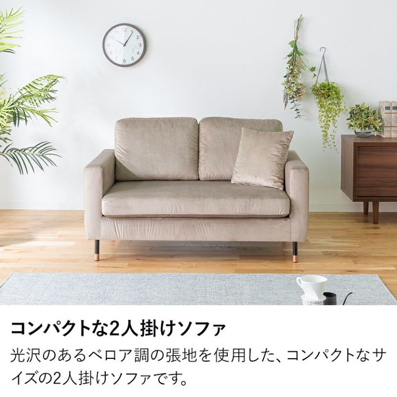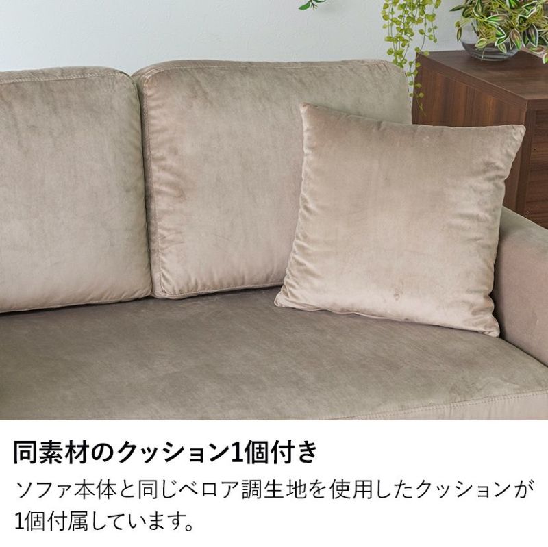 ソファ本体と同じベロア調生地を使用したクッションが1個付属。