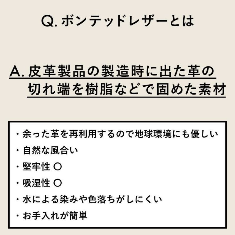 環境保全意識の高い欧米で開発された、本革を裁断したときに残る部分を再生利用して作られたレザーです。