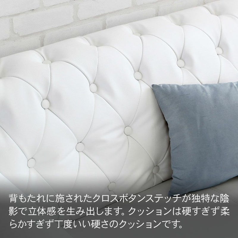 英国アンティークスタイルのワンランク上の空間づくりに、独特な本体フォルムのボタンクロスステッチの存在感とボタン止めのキルティングがエレガントな雰囲気を演出してくれます。 影のきれいな立体感と味わいが楽しめ、同シリーズのソファとベッドを合わせるのもおすすめです。