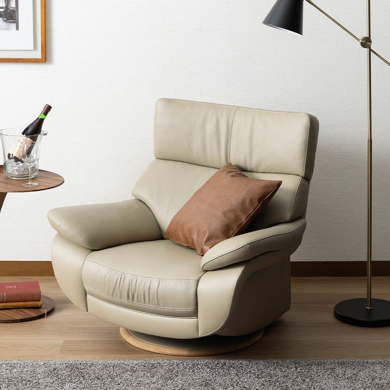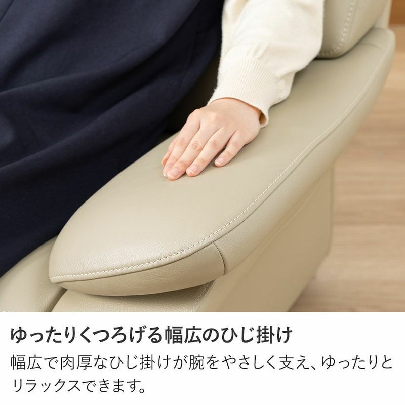 幅広で肉厚なひじ掛けが腕をやさしく支え、ゆったりとリラックスできます。