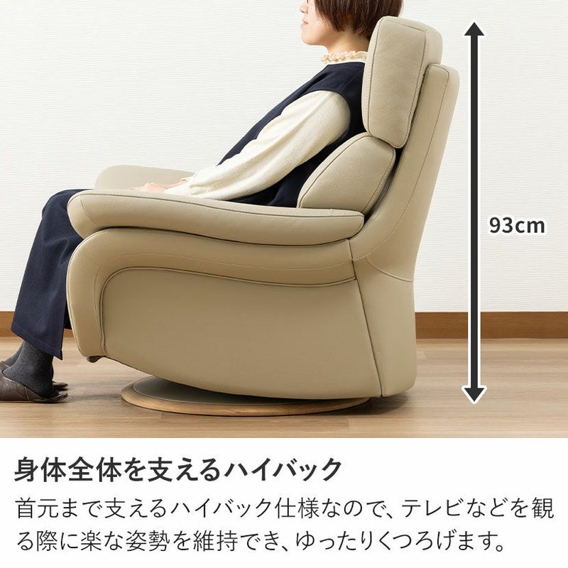 首元まで支えるハイバック仕様なので、テレビなどを観る際に楽な姿勢を維持でき、ゆったりくつろげます。