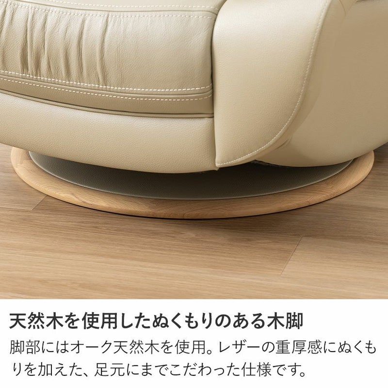 脚部にはオーク天然木を使用。レザーの重厚感にぬくもりを加えた、足元にまでこだわった仕様です。