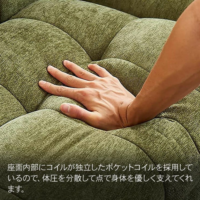 ●座面内部にコイルが独立したポケットコイルを採用しているので、体圧を分散して点で身体を優しく支えてくれます。
