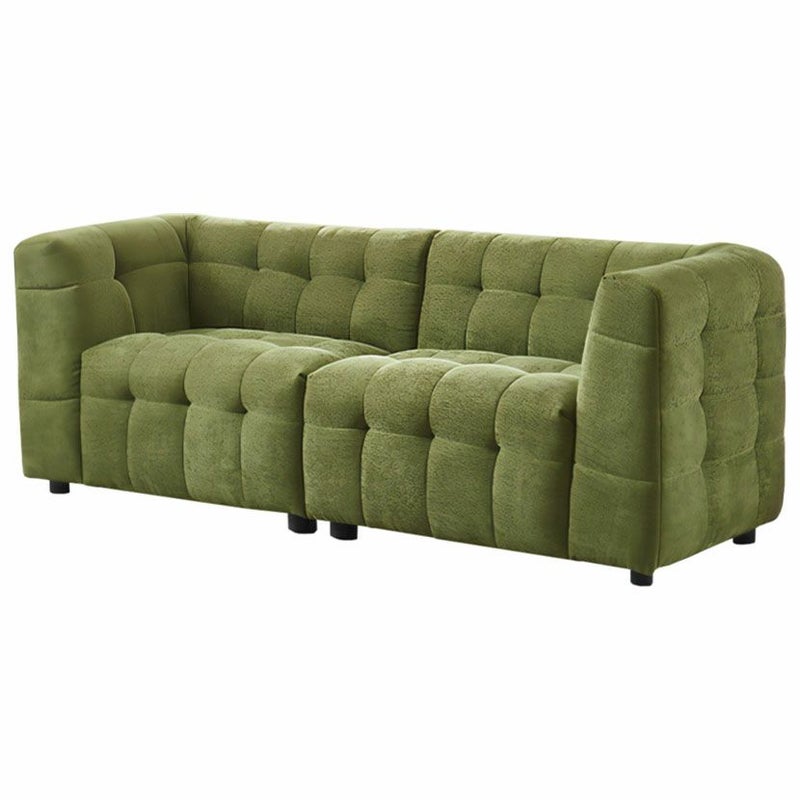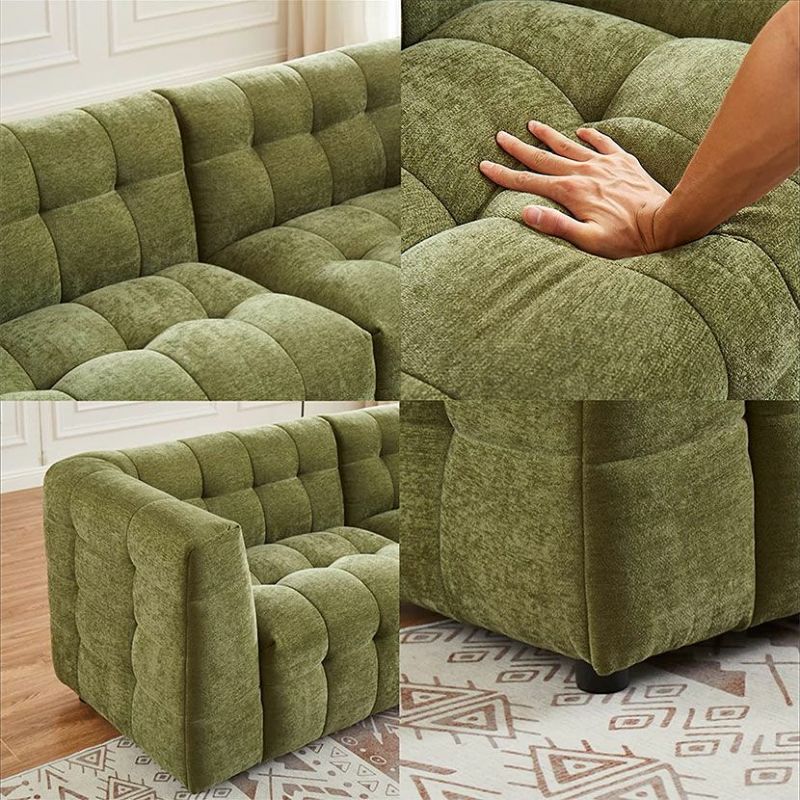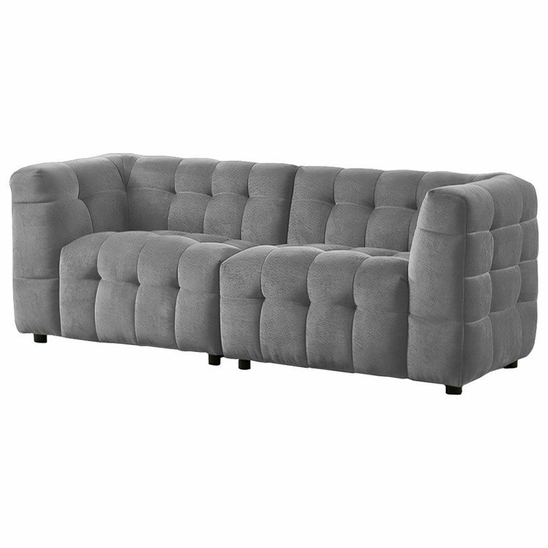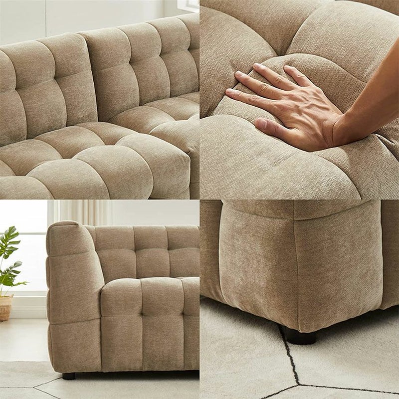 美しい彫刻のような、独特のパフ型デザインが特徴のソファ。