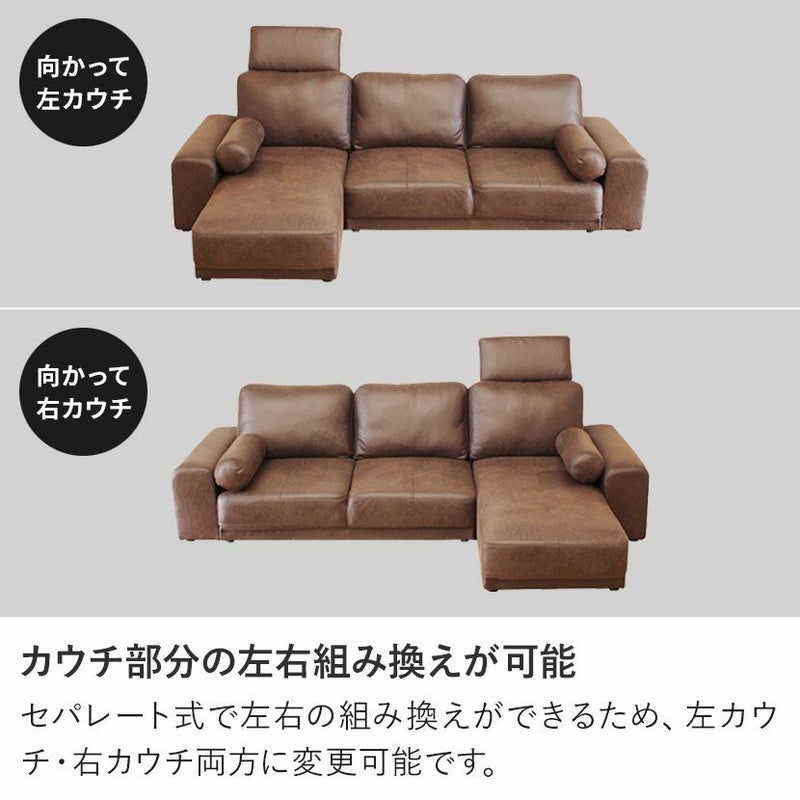 セパレート式で左右の組み換えができるため、左カウチ・右カウチ両方に変更可能です。