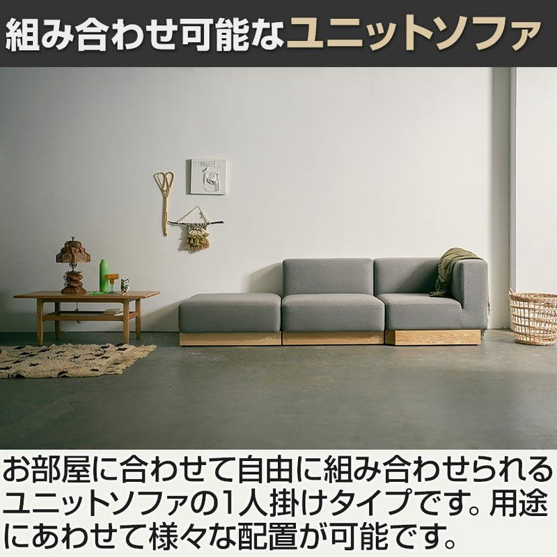 ・ボリュームのある本体とアッシュ無垢材を用いたベースで、シンプルながらも細部が特徴的なユニットソファです。