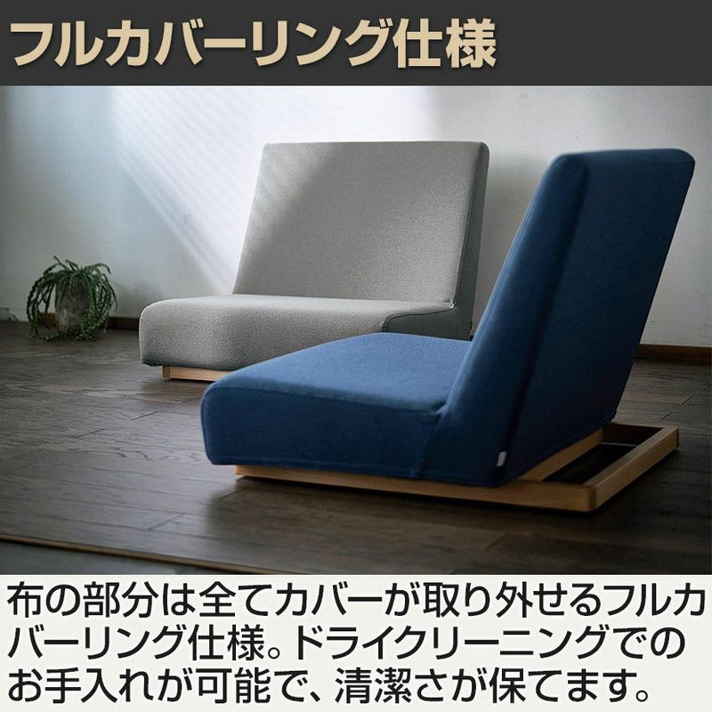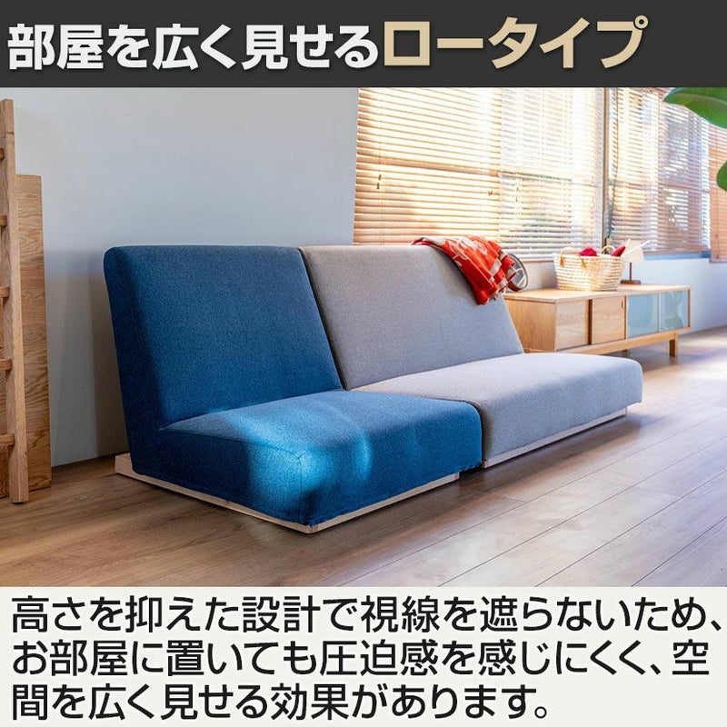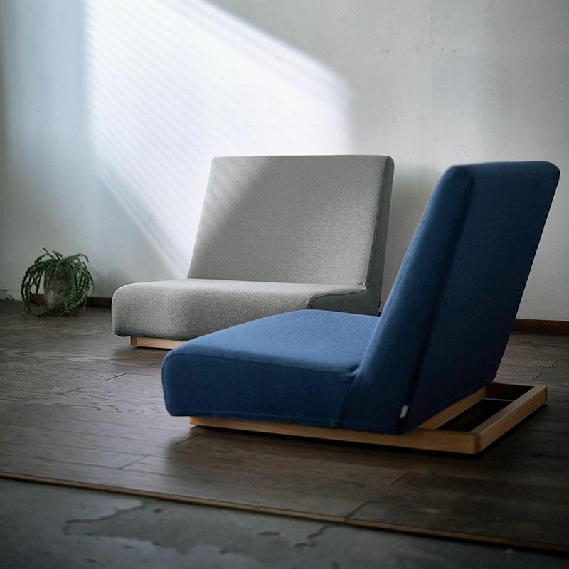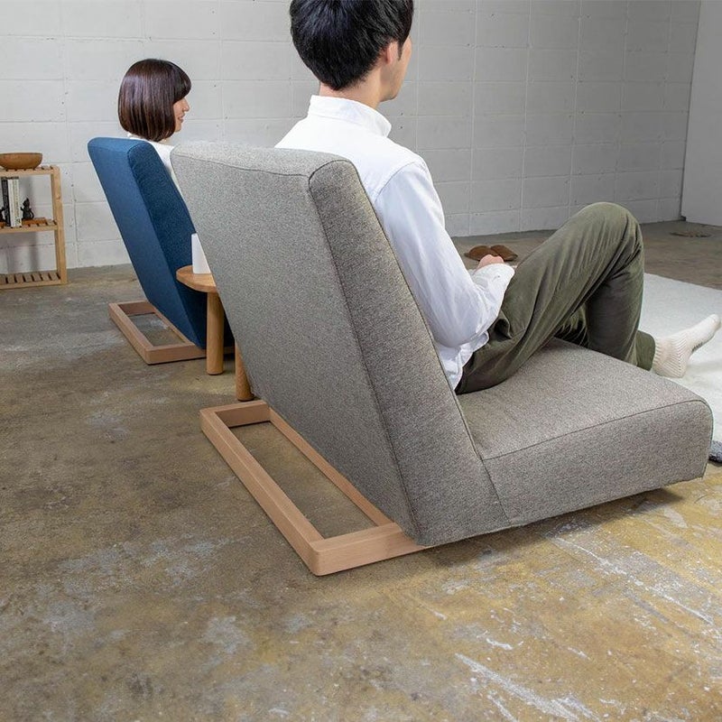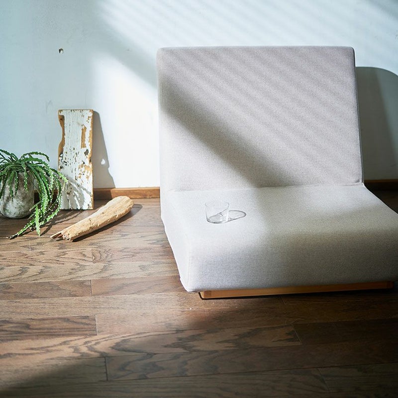 ・角材を組み合わせた脚フレームに、背と座一体型の本体フレームを配置した、座椅子のようなローソファです。