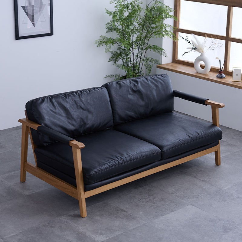 【設置無料】幅161.5cm 2人掛け ミドルバックソファ ソファー ファブリックレザー ホワイトオーク材 羽毛 おしゃれ リビングソファ 北欧モダン ナチュラルモダン キャメル ブラック