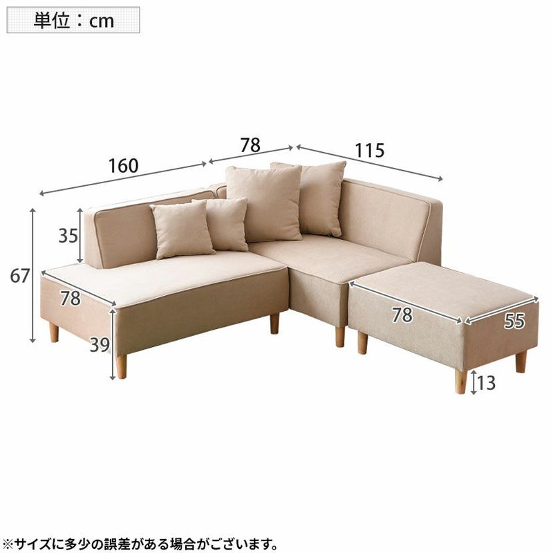 自由にレイアウトをすることができる、コーナーソファ。