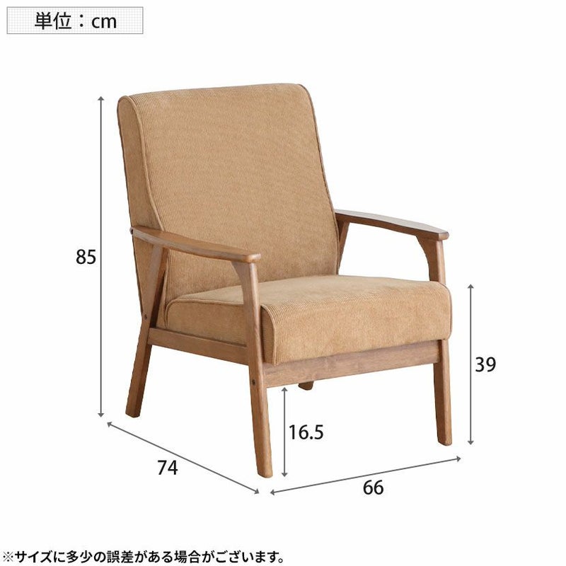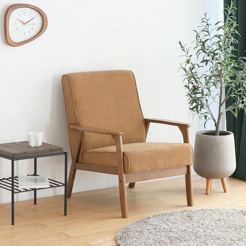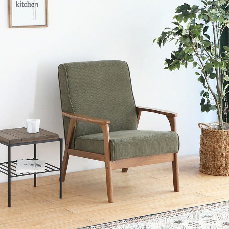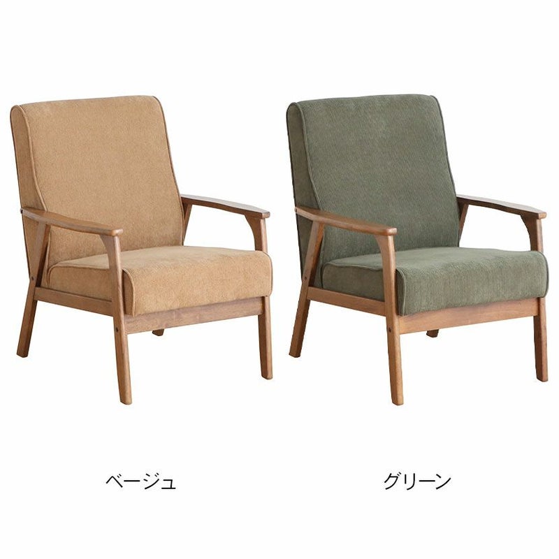 幅66cm 1人掛け コーデュロイソファ 木肘 脚付き ファブリック ソファ 1人用ソファ リビングソファ おしゃれ シンプル 北欧 ナチュラル リビング ベージュ グリーン ルンバブル