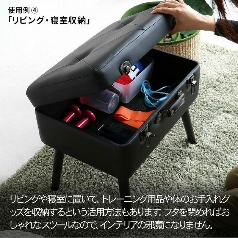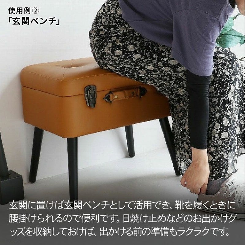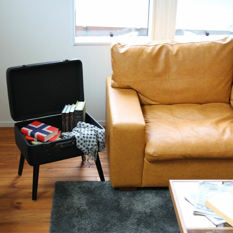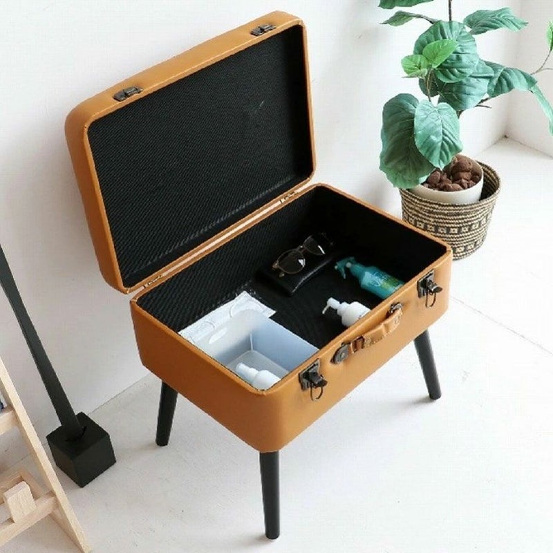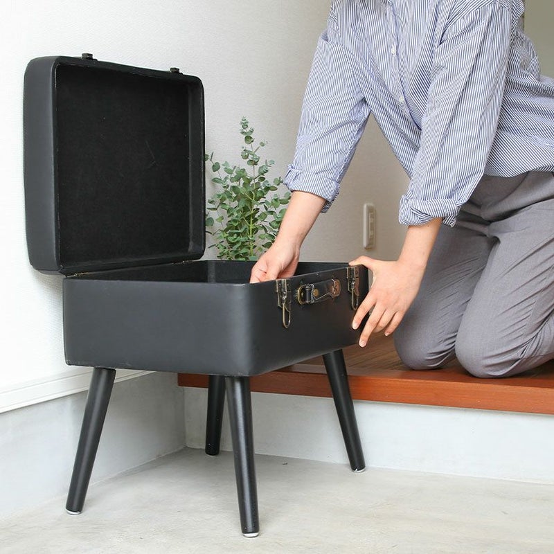 トランクがそのまま椅子になったような、おしゃれなデザインのスツール。