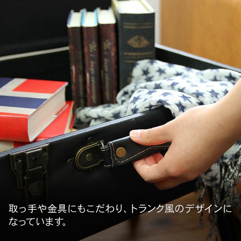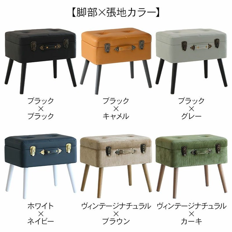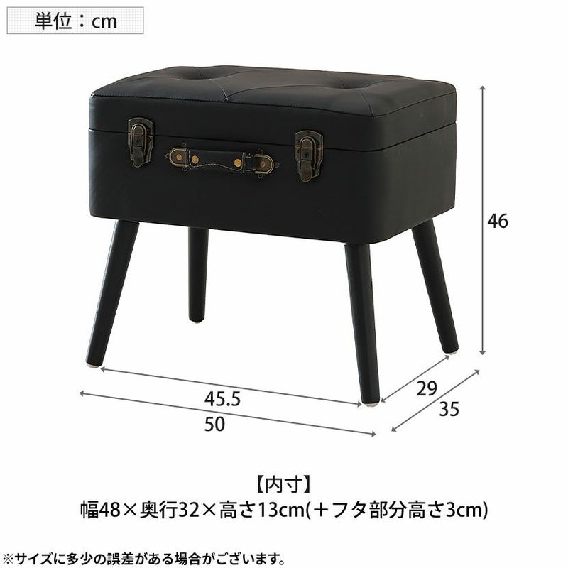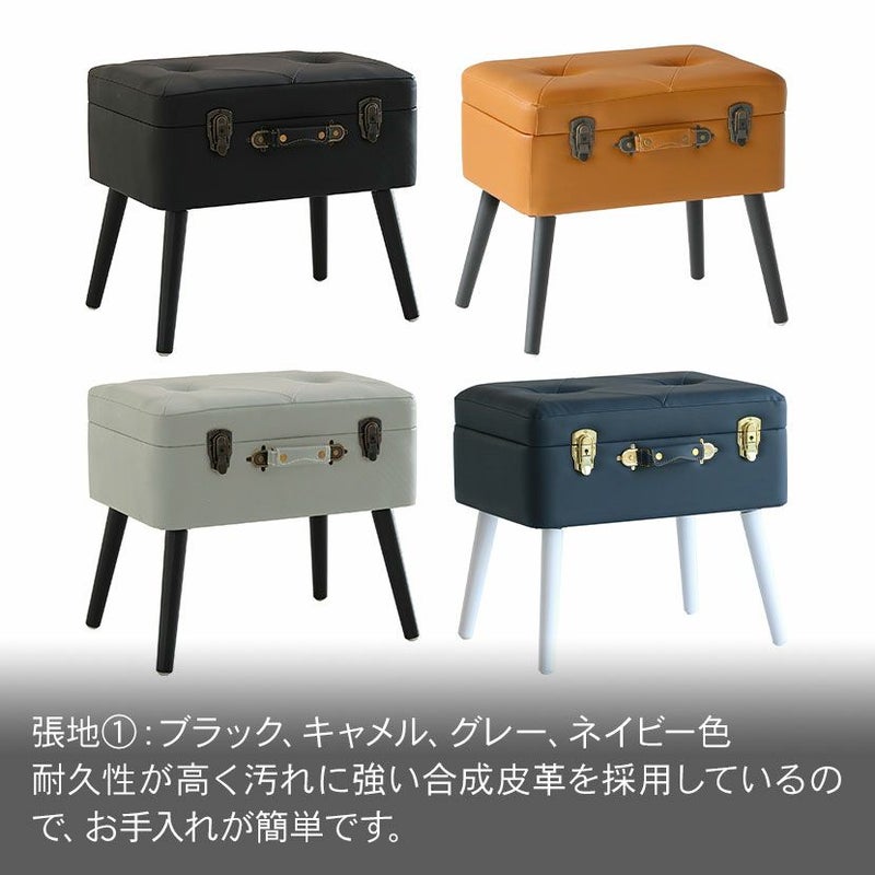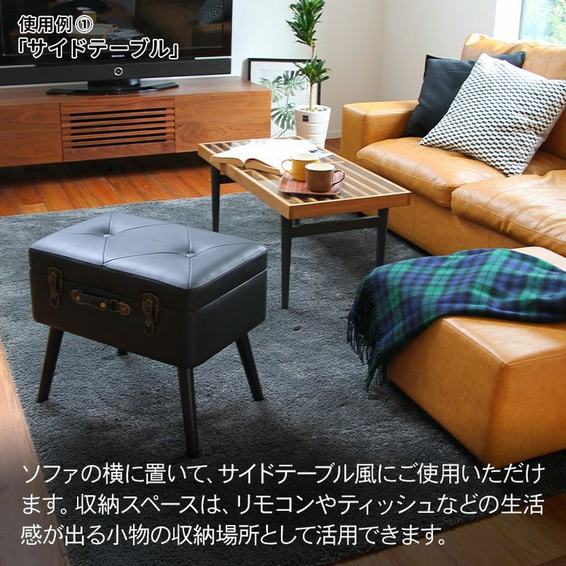 トランクがそのまま椅子になったような、おしゃれなデザインのスツール。