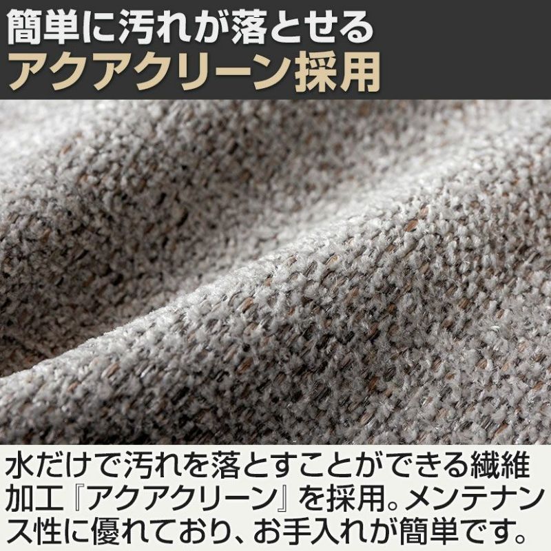 ・アクアクリーン(R)テクノロジーを採用した生地は、水だけで汚れを落とすことができ、コーヒーやワインなどの飲み物、チョコレートやクリームなどの食べ物、皮脂汚れや泥など、さまざまな汚れを簡単に拭き取ることができます。