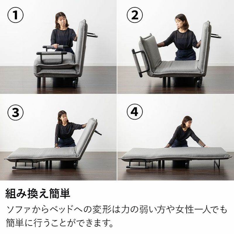 ソファからベッドへの変形は力の弱い方や女性一人でも簡単に行うことができます。