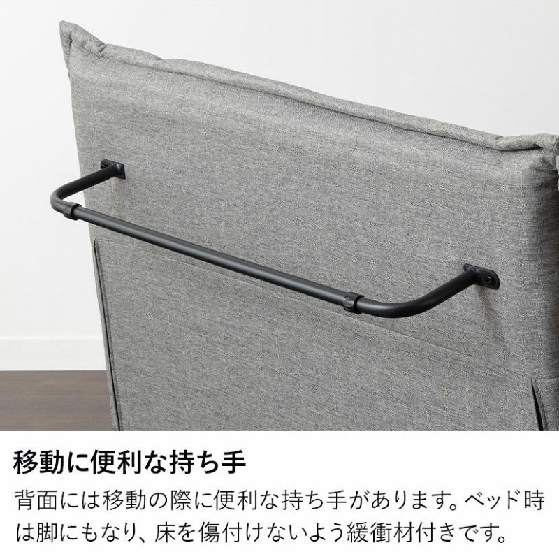 背面には移動の際に便利な持ち手があります。ベッド時は脚にもなり、床を傷付けないよう緩衝材付きです。